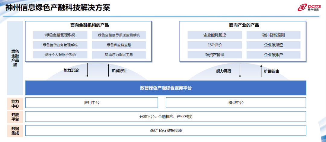 · 2大扩展:绿色金融产品族、绿色产业产品族,面向金融组织和产业组织给予绿色识别、环境效益监测、碳核算、碳资产管理等专业的绿色环境相关服务
