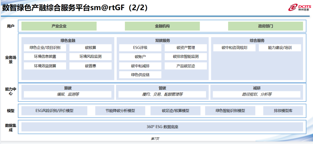 · 1个数据底座:融合ESG相关全面数据,以数据资产支撑绿色金融的持续开展